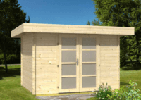 – Double or single carports & garages. Fully lockable door & windows, pitched roof or flat roof models. 40mm, 58mm or 70mm solid walls. From 15.8sq metres. $12,493 – $30,813 (Timber kit prices). Fully installed $19,638 – $55,585.